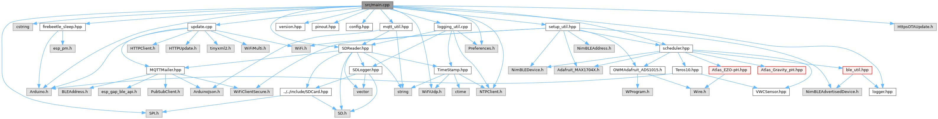 Uses the Arduino framework to initialize devices and call routines to collect data and manage power. This file is required for compilation in the Arduino framework. Furthermore it contains implementations of the Arduino required functions setup()